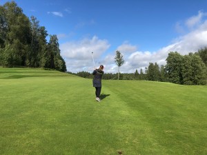 Hakkasime pihta. Esimene avalöök kohe liiva. Liivast väljasaamiseks kulus 3 löök. Järgmine löök alla kraavi. Lendu ei tõusnud ükski pall. Mõtlesin, et kas tõesti ongi Otepää rada nii raske nagu räägitakse?!? Õnneks oli meil kaasas vahva treener, kes julgustas ja ütles, et vahel lihtsalt ongi nii. Kui esimene rada oli 13 lööki, siis teise tegin juba 8-ga ning peagi järgnes lausa rada, kus esimese löögiga palli green’ile sain. See, et vahepeal vihma kallama hakkas, ei seganud üldse. Nautisime oma kolme tundi rajal igal ajahetkel ning kokkuvõttes tegin punktidega oma elu 9-raja rekordi – 10 punkti (varasem oli 9 punkti).